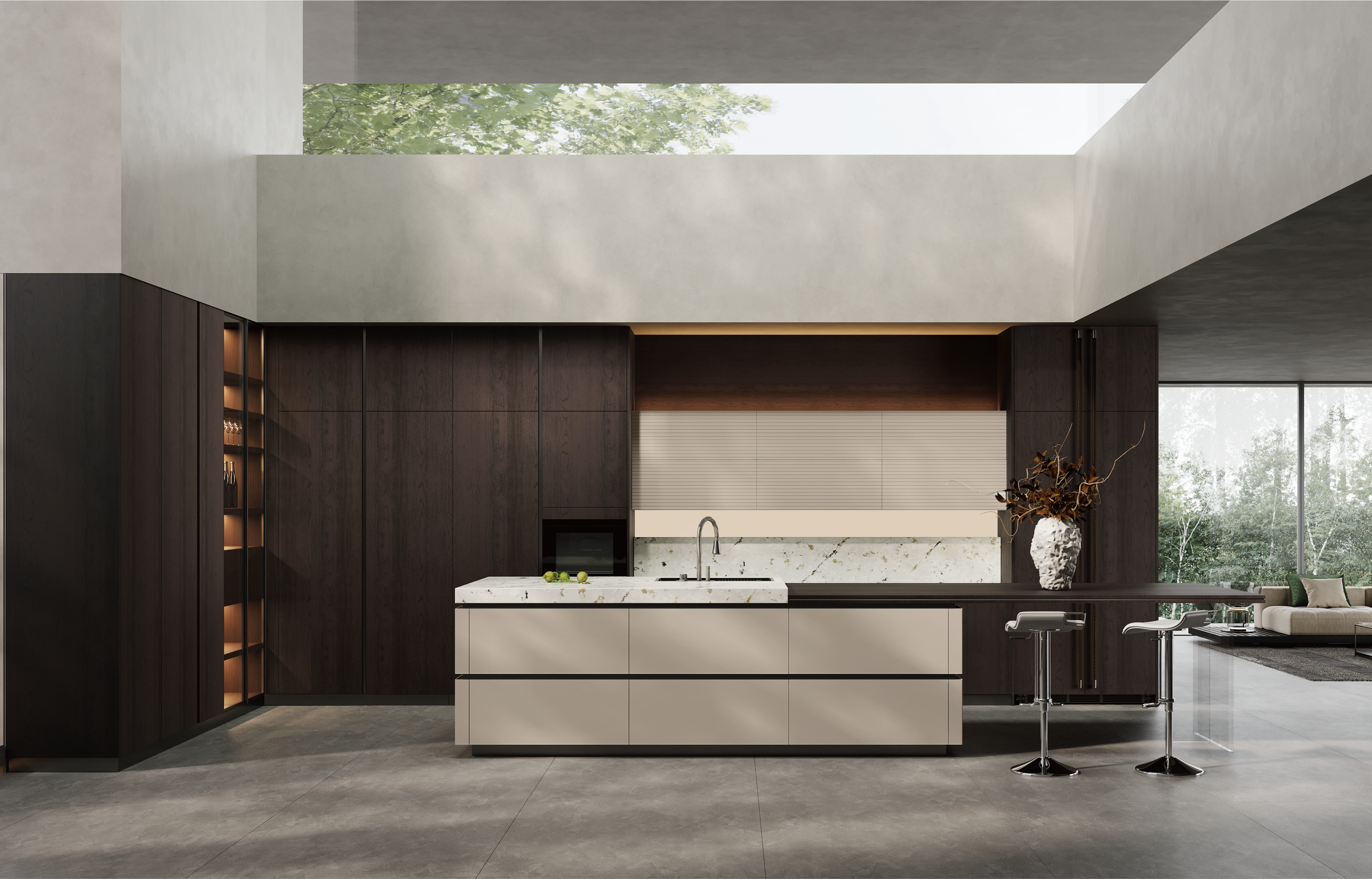 通过88858cc永利官网厨柜量体裁柜,定制出适合主厨下厨的烹饪区和洗涤区的舒适高度。